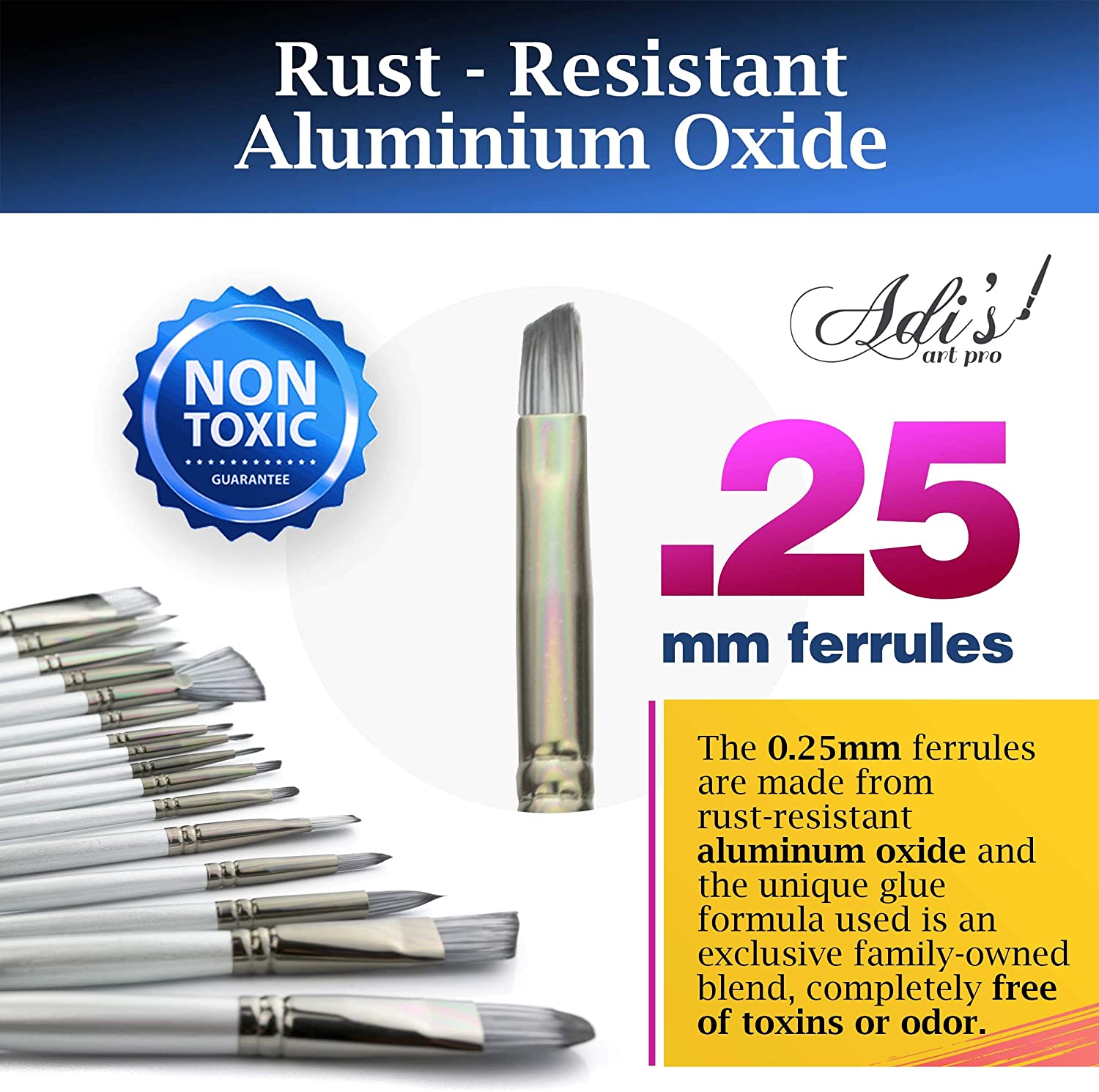 🖌 LASTS FOR YEARS: Our paint brushes art set Features non-shedding hand-picked synthetic bristles of the finest quality, rust-resistant aluminum oxide ferrules, and genuine birch wood handles, all pieced together using a very special family-owned glue that is 100% toxin & odor-free. The brushes come in a unique two-color design for a strikingly beautiful look.